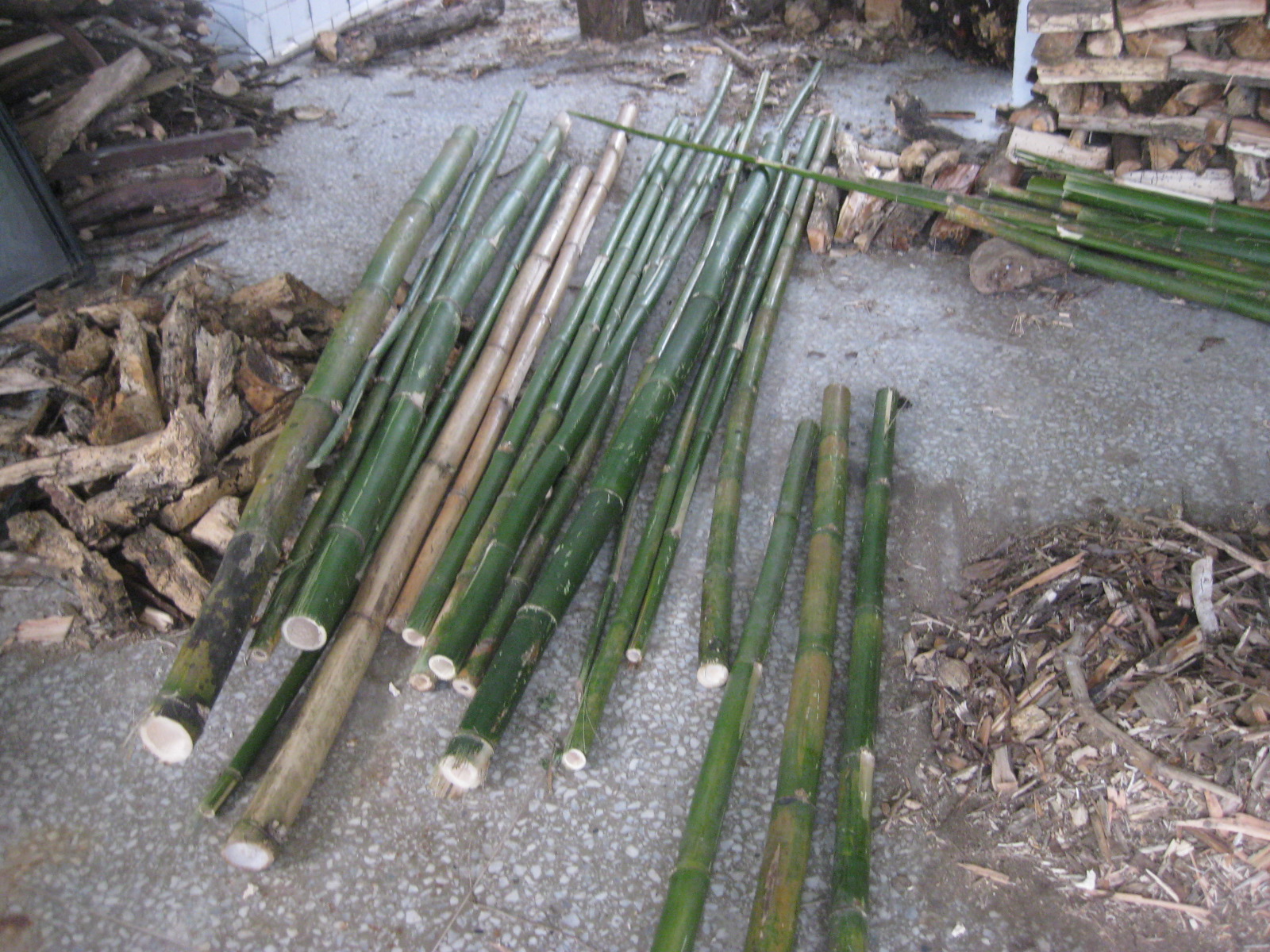 天氣逐漸轉冷,我們需要做一個床,等老師他們來了就有地方可以睡了。我們平時在生活裡對周邊的資源就會注意去收集,在路邊撿到被丟棄的木頭,回來處理曬乾,就先存放著,說不定什麼時候會用到。做床本來想用木板,但是山上木板不好取得,用買的,我們覺得暫時不要,不得已才會去買。山上最容易得到的是竹子,我們想用竹子試試看。