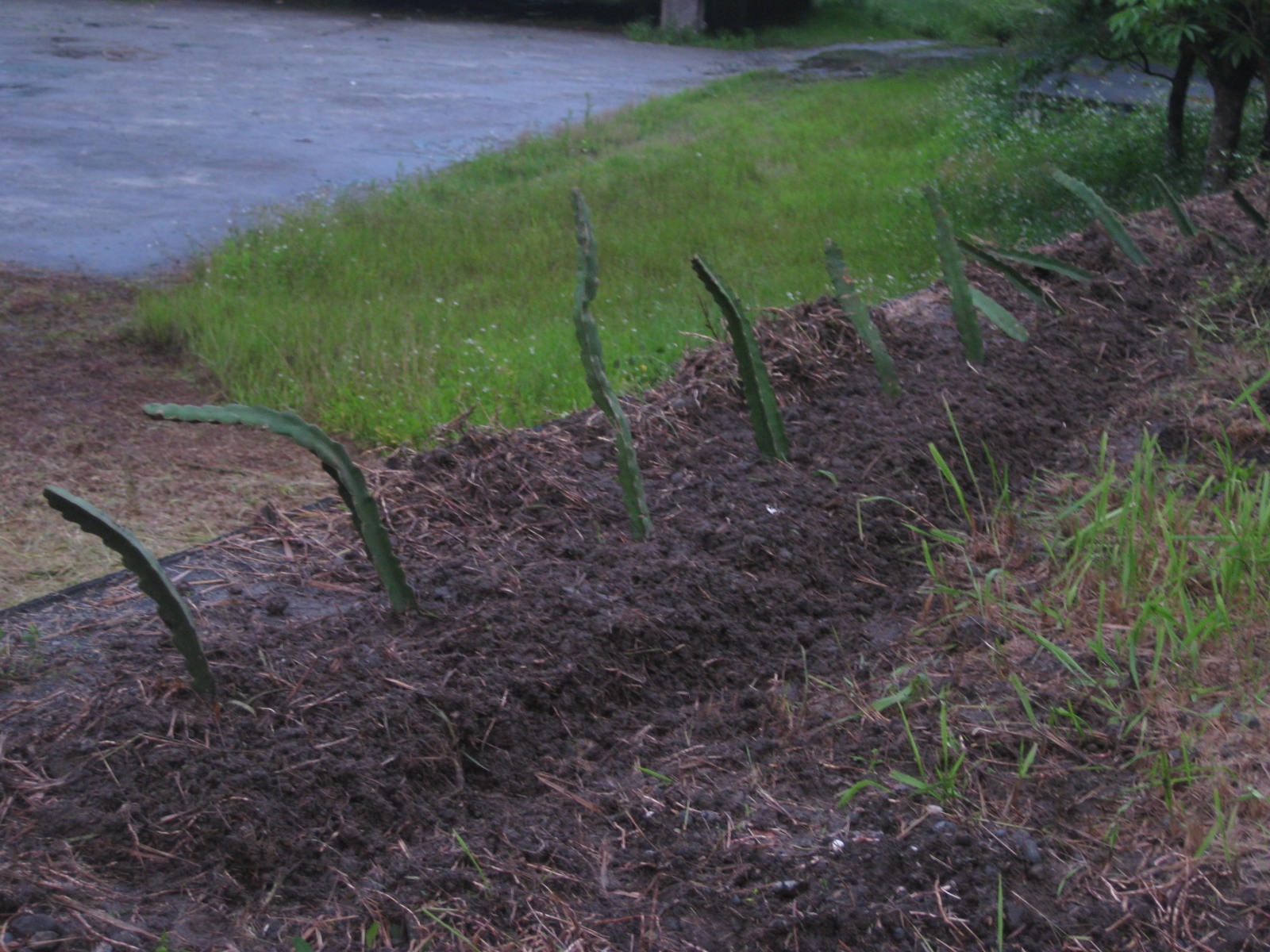 回到家就趕快把這些新客人在周圍落戶了。種瓜得瓜,種豆得豆,不久就會有有機火龍果和芭蕉吃了耶!