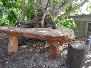 阿年見我們還沒有桌子,拿來了自己做的漂流木桌子,我們要竹子蓋休息亭,蓋廚房,他帶著我們去他地裡砍,大嫂也幫忙一起做,真的是很感動~山裡的人超淳樸的。