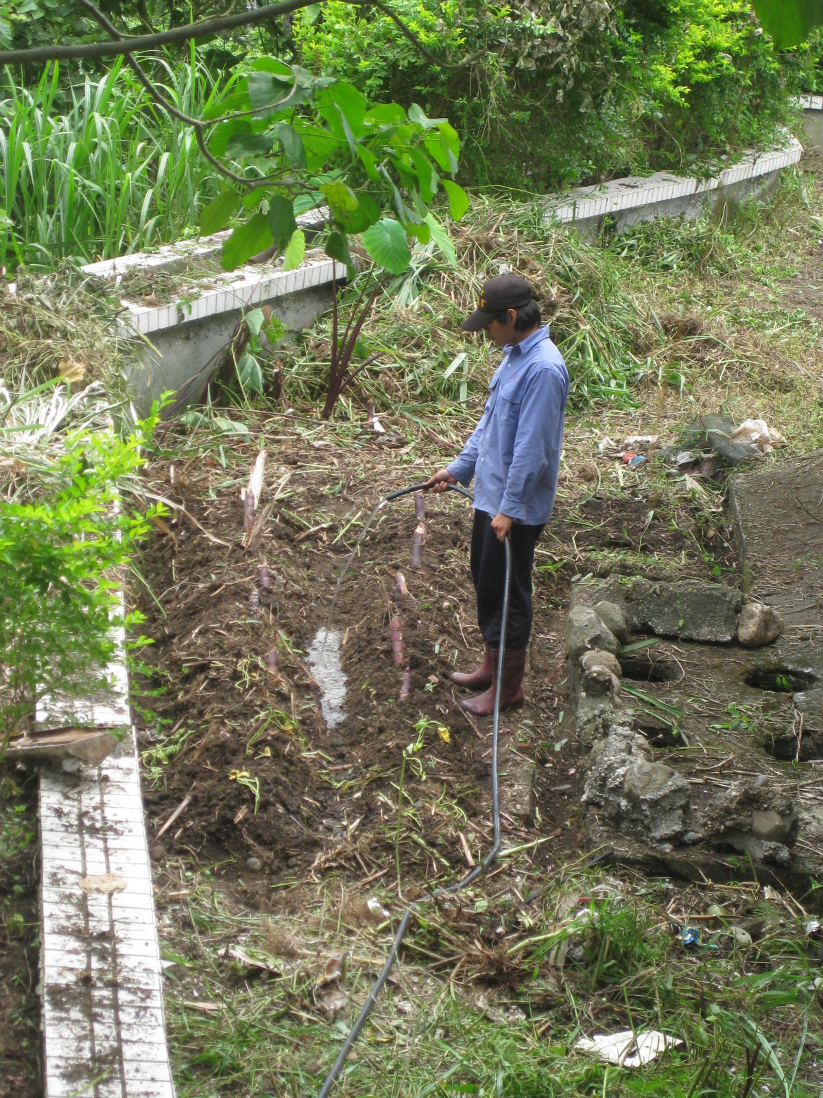 非常感謝胡媽媽和阿年的幫忙,學校的操場很大,都可以開來種菜,之前自己用鋤頭開地,實在不好弄,除了草根的盤結,很多的石頭,一小塊做上半天,把鋤頭的一個角都弄斷了。就有些不想弄了。胡媽媽幾次都說起,操場的一角都可以用來種菜,我也知道好,但是~不好弄啊,我們也沒有耕耘機。