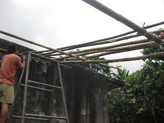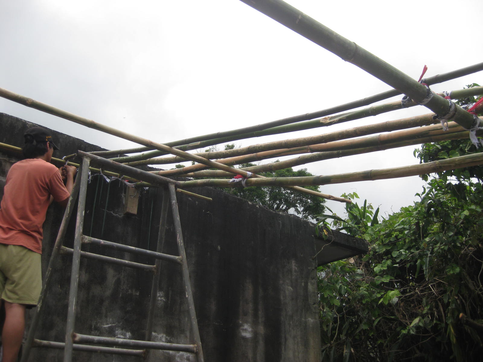樹枝舍不得砍,拉下來當涼亭的遮陰枝