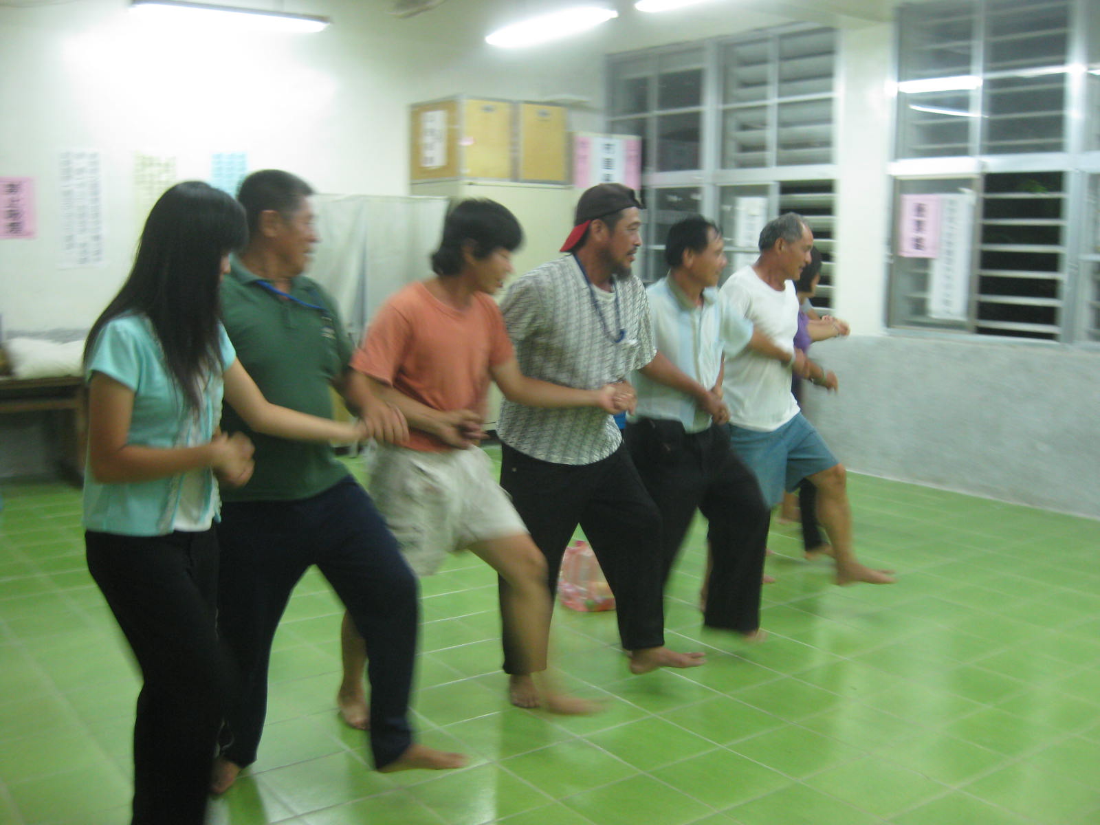 晚上大家在一起練習舞步,太久沒有唱啊跳啊,還是要練習一下,邊練邊玩,又唱又跳好熱鬧。不過想想準備豐年祭還真辛苦,白天忙外,晚上練習跳舞,不過看他們的熱情勁,看不出有辛苦的樣子呢~
