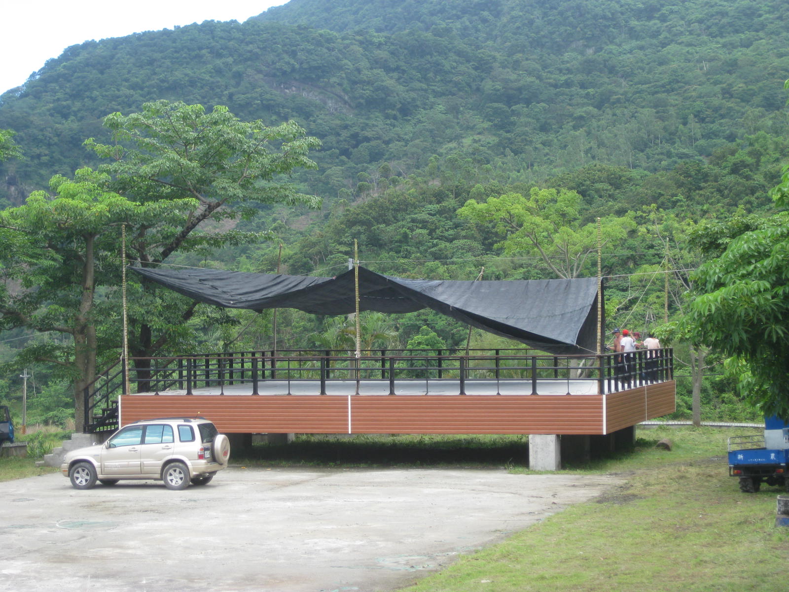 下午都是男生的天地,幾個男生很快的取來了檳榔枝,大家一起合作很快就把柱子豎起來了,蓋上了黑網,到時就有地方躲太陽,不會太熱了。