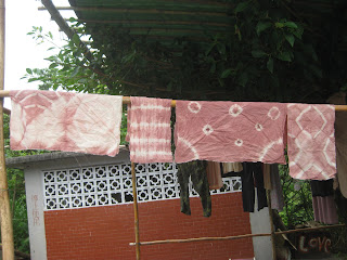早上第一件事就是把植物染的布拿起来洗,哇!每个都好看,自然的颜色,看起来都很舒服。爱上了植物染。