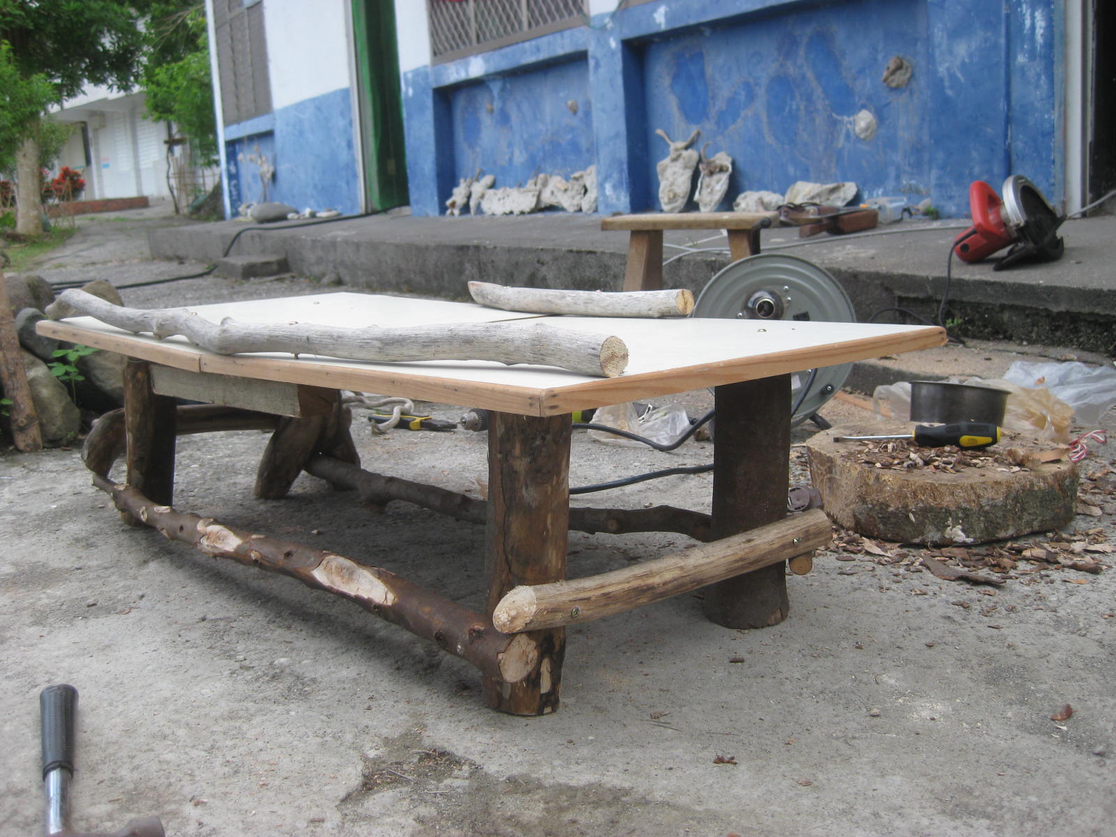 做一个泡茶的矮桌,夏天很喜欢坐在地板上,凉凉的,一起围坐矮桌泡茶聊天是很享受的。用掉下来的柜子门,还有烧火的柴里找来几根可以用的树枝,刚开始做的桌子有些站不稳,结构做好后就很稳固了。看起来蛮有味道的吧~