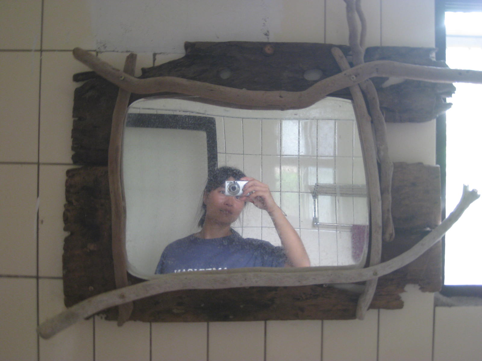今天非常想做手工,看洗手间的镜子是之前留下来的,塑胶框子很不喜欢,想用木板和漂流木来试试,凭着感觉去做,几下就做好了,觉得还不错,少了塑胶框子看起来自然多了。