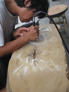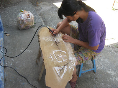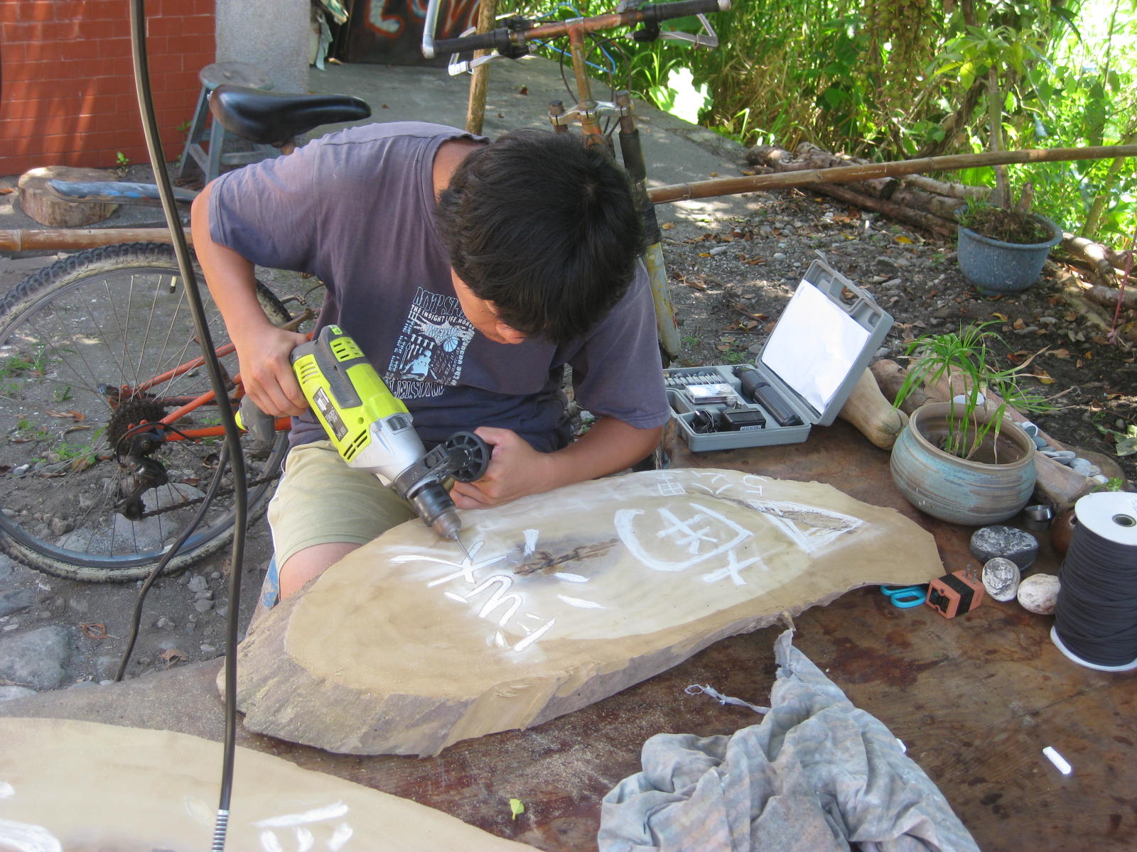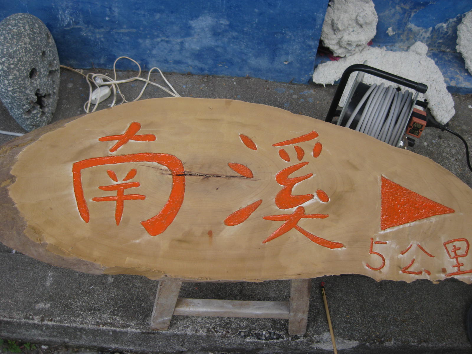 在我們建議之下,許爸爸幫我們找到了舊木頭,我們要做南溪的標示牌,讓來找部落的客人能很容易的知道部落的方向。
