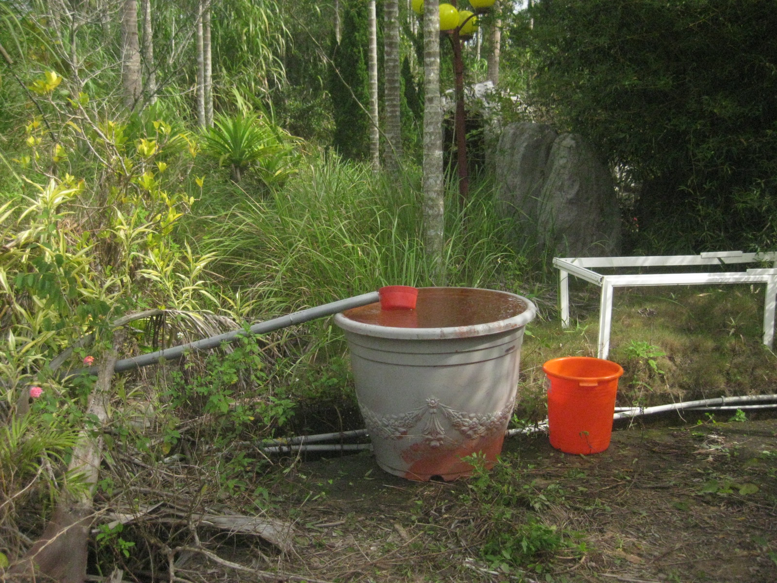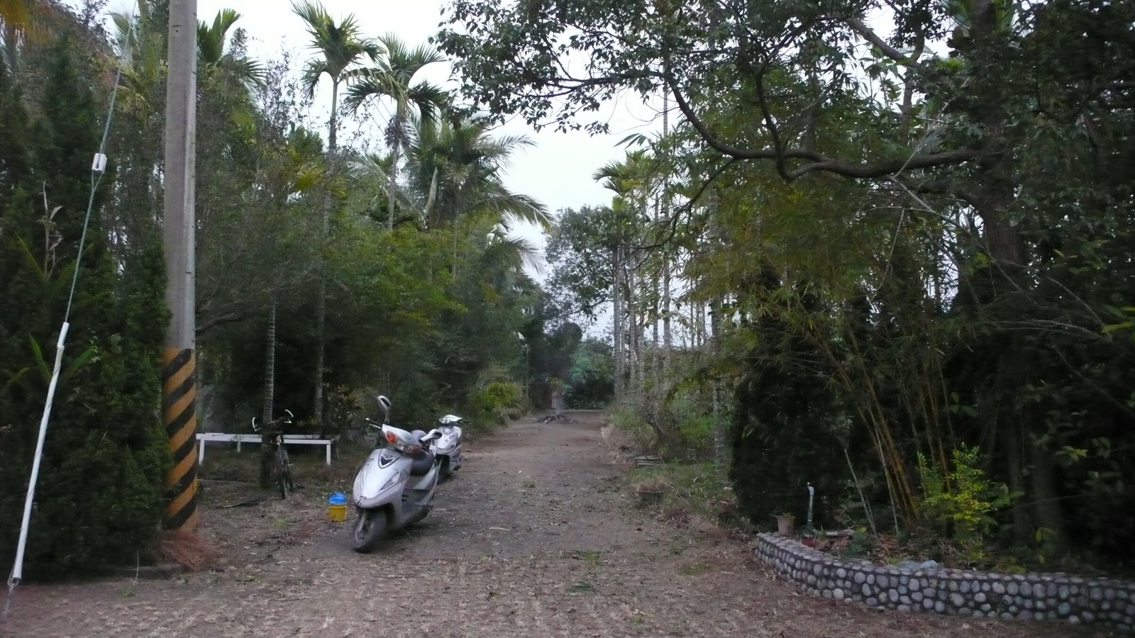 第一天把東西卸下,走進房間的廊前也是踩草而過。有點意外的是居然沒有水,這個怎麼打掃?還有洗澡?連上廁所的抽水馬桶也只有看而不能用。當然就是放野了。緊急時,來了救心,鄰居很快的切斷山泉水管,流淌出來的山泉水,讓我們歡悅!已經很累了,沒有人想要煮水洗澡,連洗腳也是用水沖一下,意思一下就各自回窩去了。