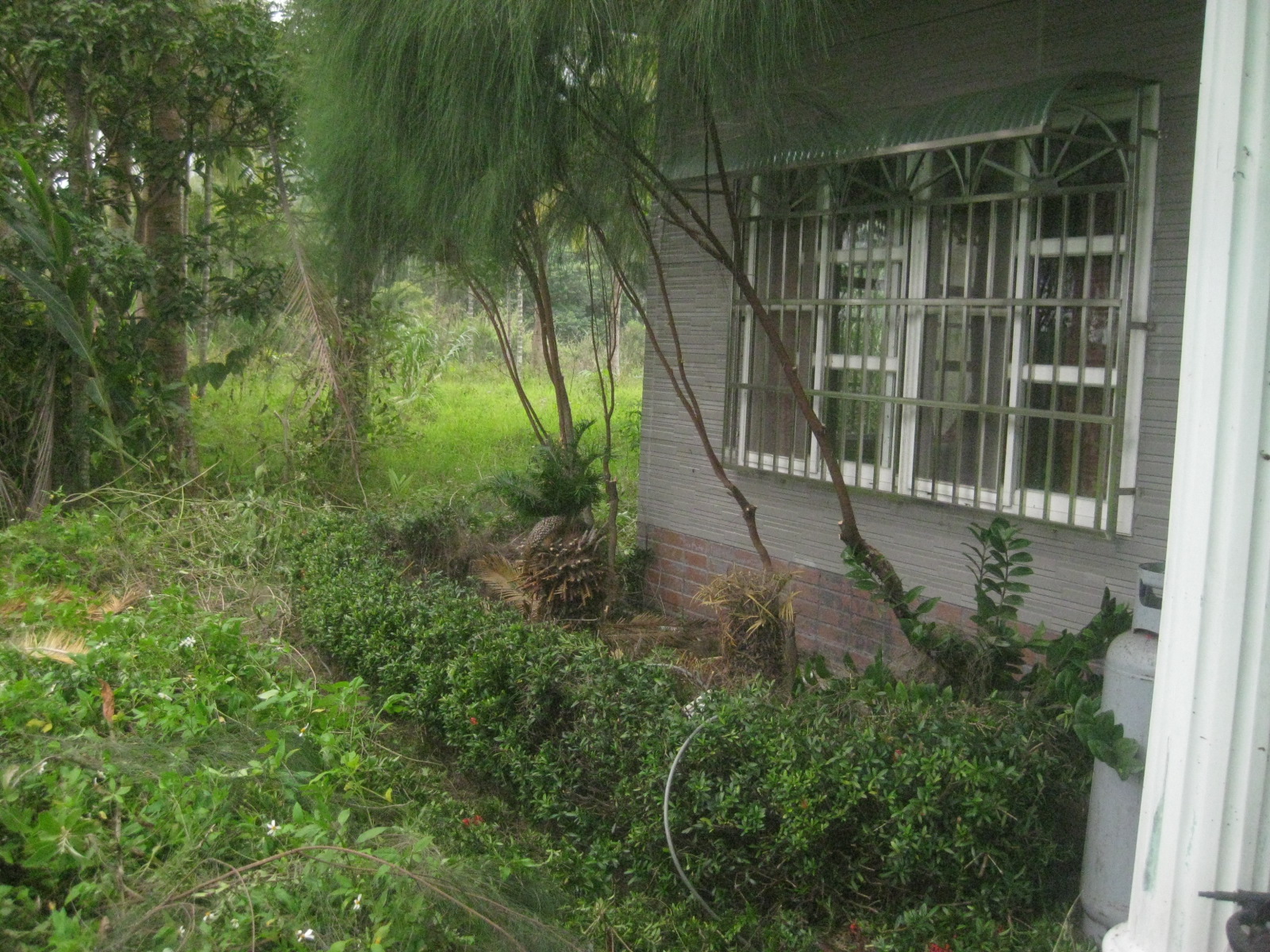 第二天睡到自然醒,討論分配工作後,就各自就位。把爬滿爬藤從窗戶上、冷氣機、落水管上扯下來,把門前周圍的草和花園籬笆清理出來,看起來滿意多了,再把庭院的草清理出來,整個是改頭換面。樓裡的打掃也在進行中,2樓的窗戶很多壁虎的戰績,清理打掃後,看外面的景色看得更清楚。